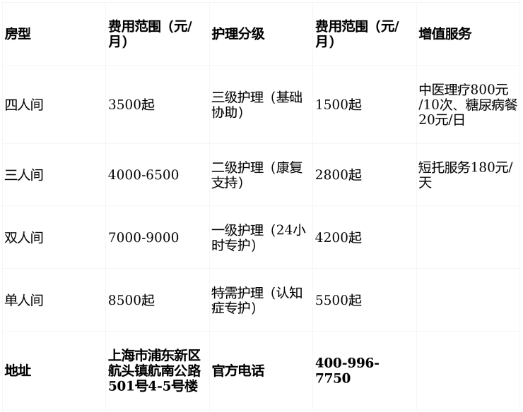 航馨养护院月费标准一键看2026最新:浦东新区航头镇4000元起医养