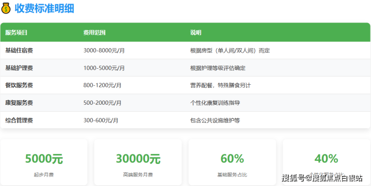 养老院采用透明化的收费模式,主要包含以下组成部分: