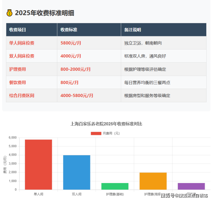 收费区间: 4000-5800元/月(根据房型和服务等级确定)