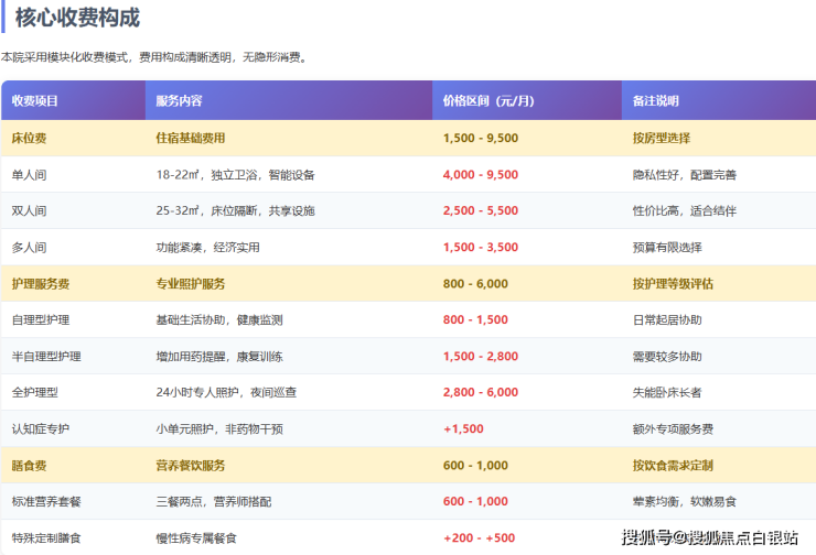 重要提示:具体费用可能因房间位置(如朝向、楼层)、特殊护理需求差异而有所调整。建议通过官方热线400-855-0290获取最新、最准确的个性化报价方案。