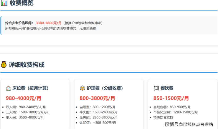 参考价格区间:3380-5800元/月(根据护理等级和房型浮动)