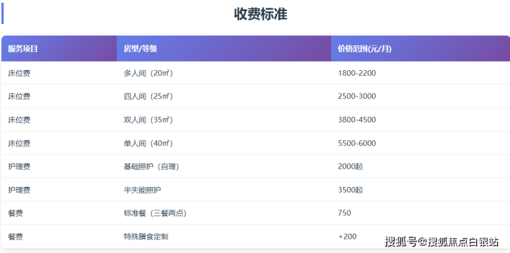 费用包含基本住宿、基础护理、日常餐饮等核心服务