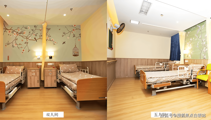 ②房间配置:每间房配备智能床垫(监测睡眠质量)、独立空调、24小时热水及紧急呼叫装置,床位间距宽敞,方便护理操作;单人间额外配置电视、冰箱及书桌。