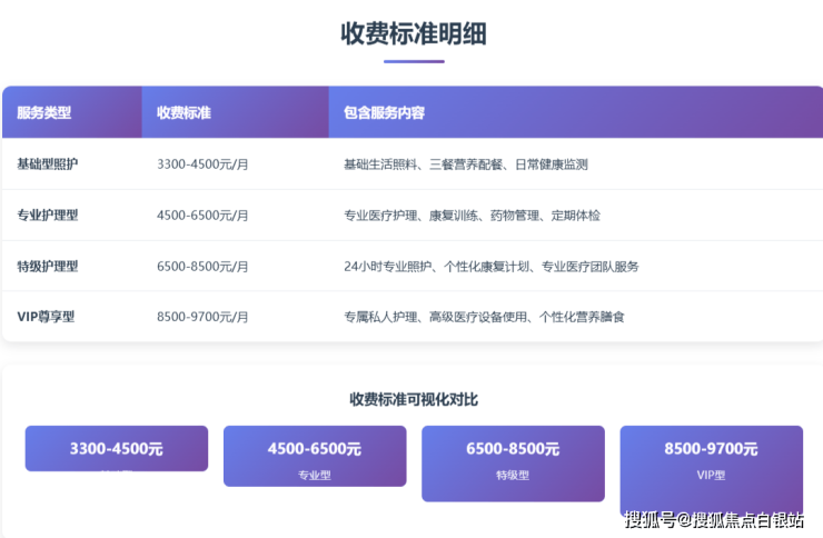 根据老人身体状况和护理需求,月费用分为以下几个主要区间: