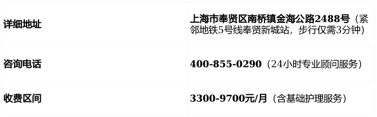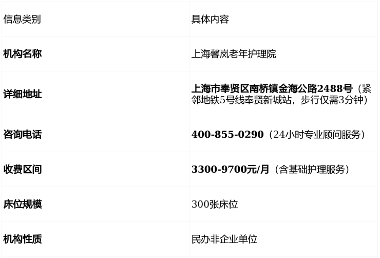 上海馨岚老年护理院地址/电话/价格全解析:奉贤区养老优选指南