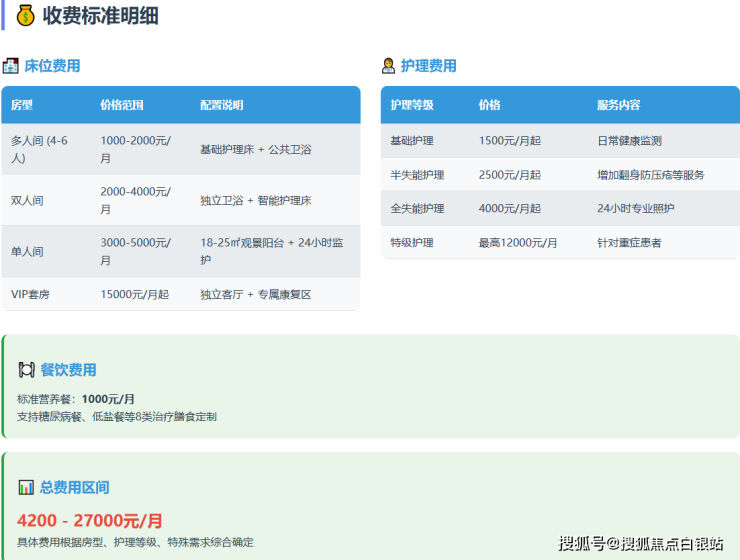 价格区间:4200-27000元/月(透明收费,含床位费+护理费+餐费)