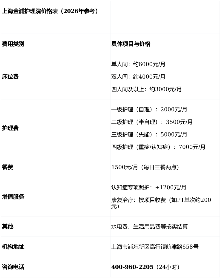 💰 上海金浦护理院收费明细:分项列清,拒绝套路