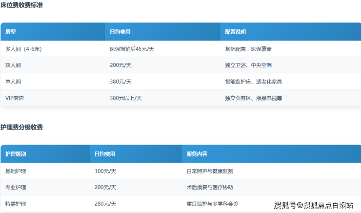上海君爱康复医院采用透明化的收费体系,主要实行"床位费+护理费+餐费"的收费模式。以下是2026年的详细收费标准: