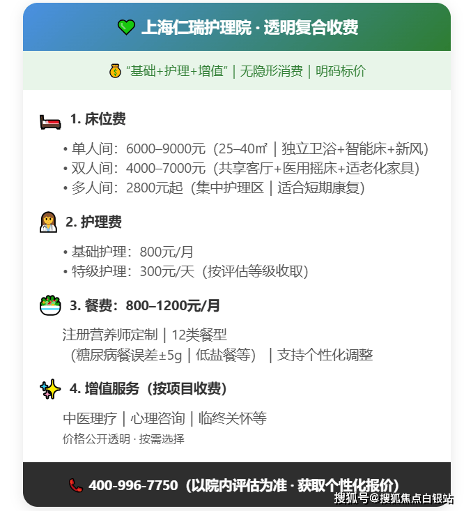 五维康复+分级护理!上海仁瑞护理院2025价格划分标准|公园路435号医养标杆
