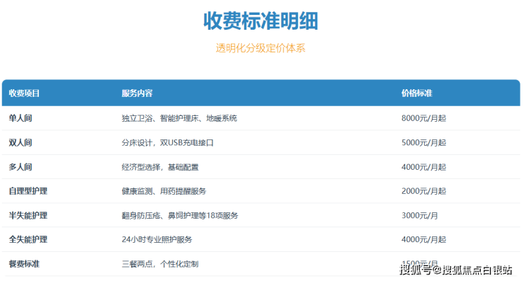 九如城青蕴颐养社区采用"基础费用+分级护理+增值服务"的复合计费模式,具体构成如下: