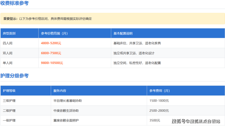 收费标准:4800-13350元/月(根据房型与护理等级动态调整)
