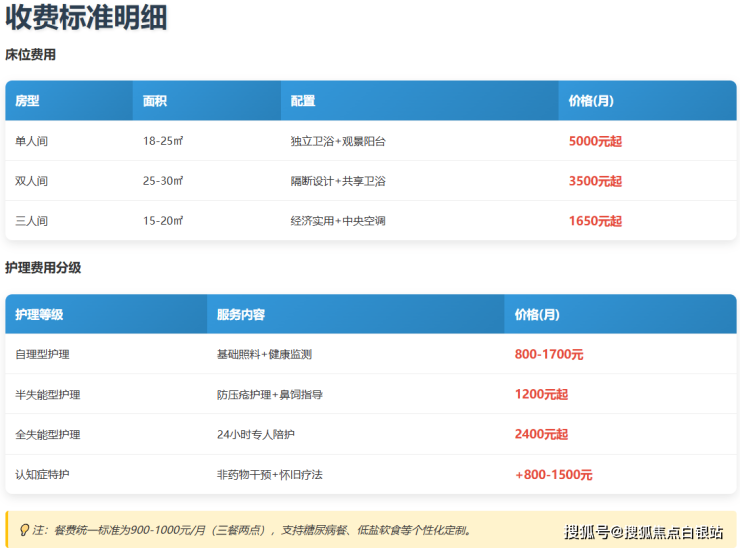 这里采用"床位费+护理费+餐费"的定价模式,所有费用明码标价,让家属消费得明明白白!