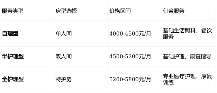 收费标准:4000-5800元/月(根据房型和服务等级确定)