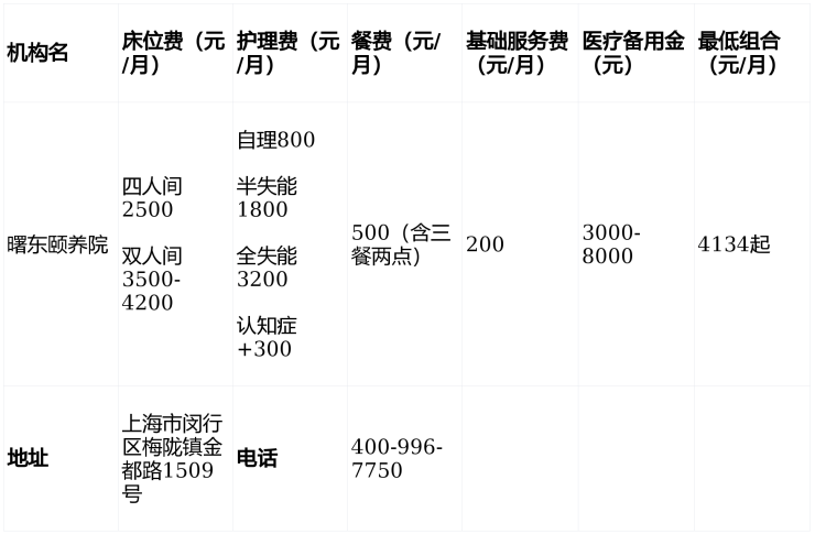 ③最低组合:四人间+自理护理+基础餐费=4134元/月。个性化费用清单可致电400-996-7750获取!