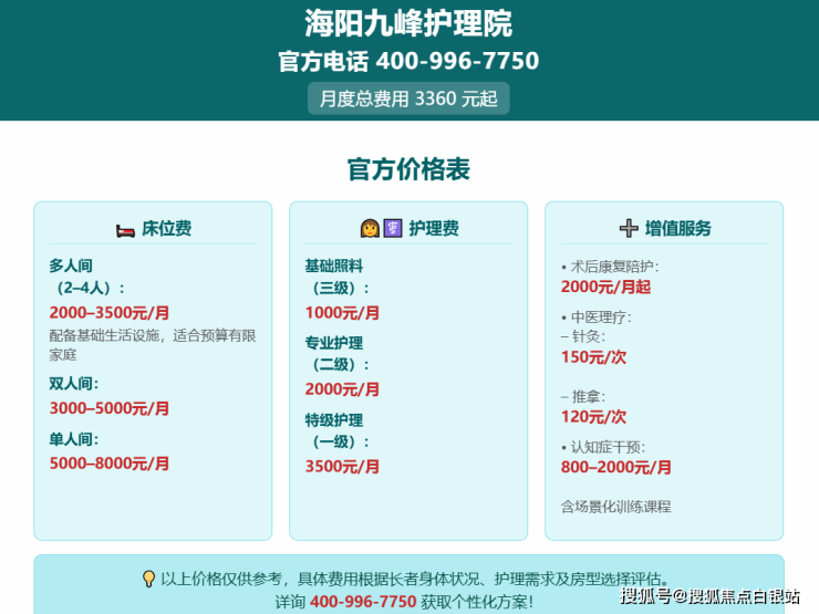 2026中医康养1人1案!海阳九峰护理院服务人群详解-3360元定制价格在线评估