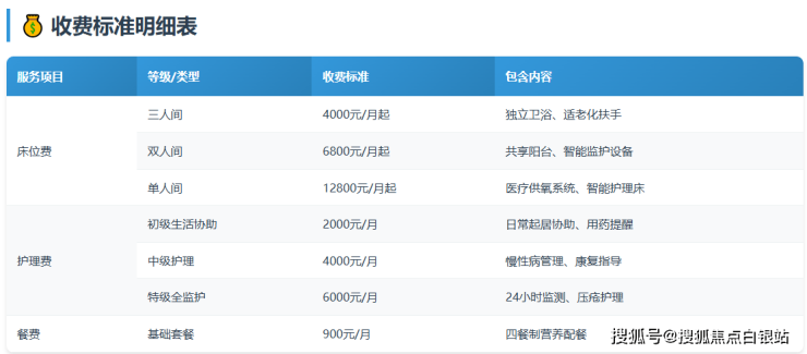 重要提示:具体收费可能因房型选择、护理等级需求等因素有所调整,建议拨打400-855-0290获取最新收费标准。