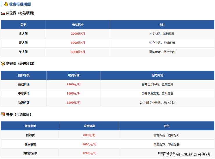上海听康养护院采用"床位费+护理费+餐费"的分项计费模式,所有费用公示清晰,真正做到无隐形消费: