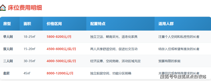 请注意:以上价格为基于公开信息的区间参考,最准确的费用需结合长者实际身体状况、所选房型及当前院内政策进行综合评估。强烈建议您拨打400-855-0290进行一对一咨询。