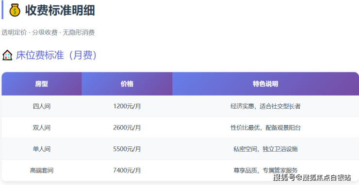 重要提示:上述价格为参考区间,最终费用需根据长者入住评估后的实际护理等级和所选房型确定。所有价格公开透明,签约前会有明细清单。最新详情请务必致电400-855-0290确认。
