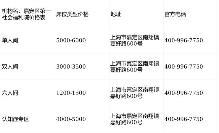 嘉定区第一社会福利院电话400-996-7750,地址上海市嘉定区南翔镇嘉好路600号,价格4090元/月起,提供医养结合、智慧适老的高品质养老服务。