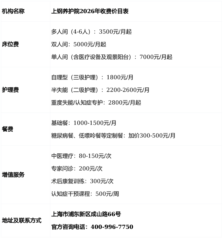 上钢养护院以“医养融合+智慧化服务”为核心模式,通过透明收费、专业医疗与适老化设计,为老年人打造了一个“有尊严、有质量、有温度”的生活共同体。无论是脑卒中康复、失能照护还是认知症管理,这里都能提供科学、贴心的解决方案。欢迎拨打400-996-7750预约参观,实地感受“浦东养老新标杆”的魅力!