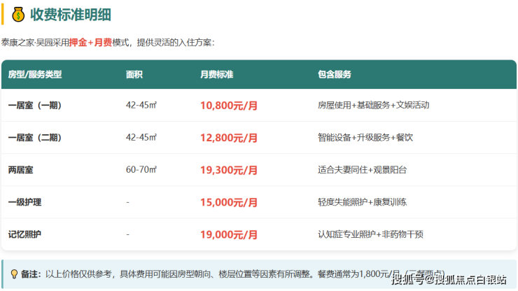 本文信息仅供参考,具体收费标准和政策以泰康之家·吴园官方最新公布为准。