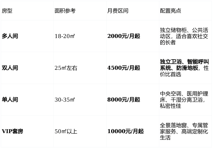 参考价格区间:3000-15000元/月(具体费用根据房型、护理等级、个性化需求而定)