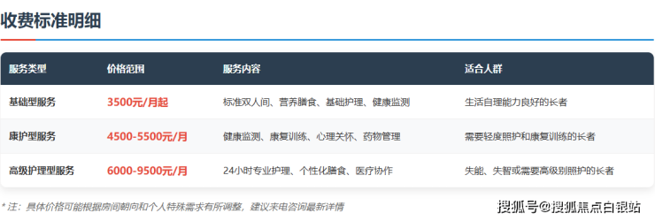 护理费:按服务等级划分,基础护理1000-2000元/月,高级护理2000-4000元/月,专属护理5000-10000元/月