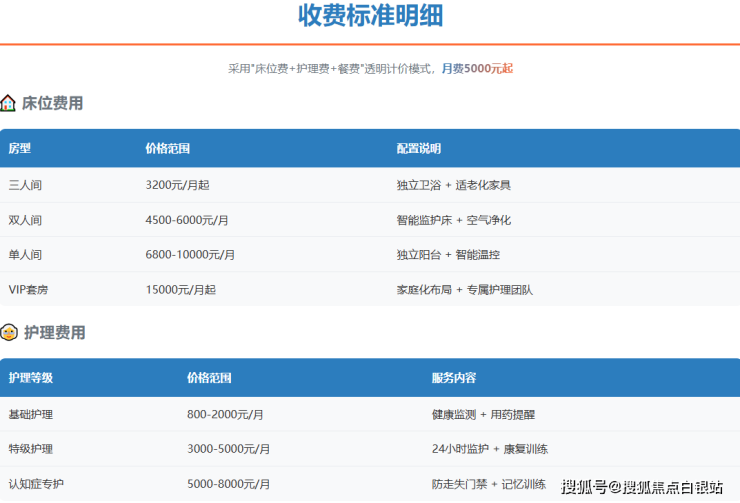 VIP套房:15000元/月起,采用家庭化布局并配备专属护理团队