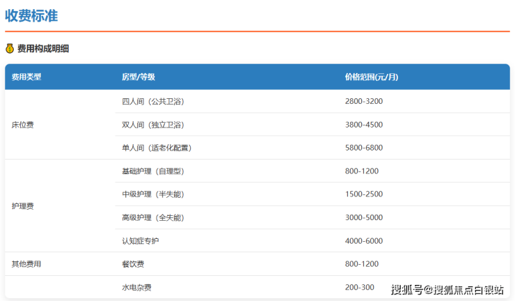 为帮助理解,我们以一位选择双人间、经评估需要中级护理的长者为例,进行月度总费用估算: