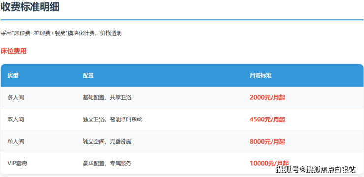 上海高逸护理院采用透明化模块计费方式,所有费用构成清晰明确,无隐形消费。总体收费区间为3000-15000元/月,具体构成如下: