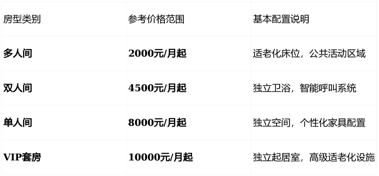 收费范围:3000-15000元/月(含床位、护理、餐费等基本费用)