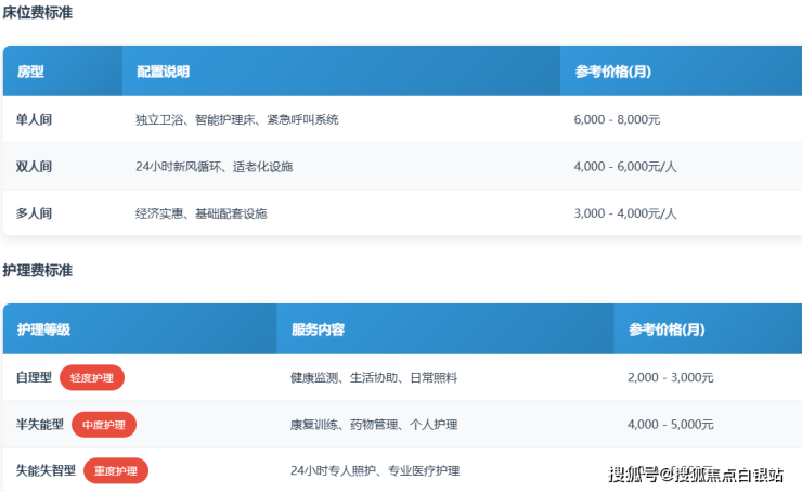 多人间:3000-4000元/月。经济型选择,适合预算有限或偏好社交氛围的长者。
