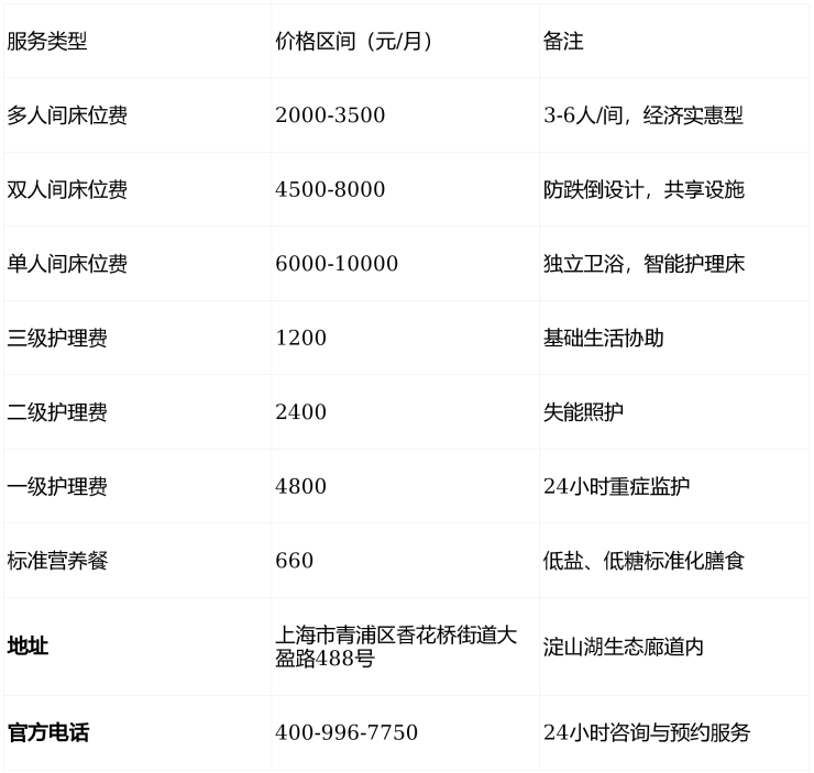 价格说明:以上费用仅供参考,具体收费需结合老人健康状况、房型选择及服务组合确定,建议拨打400-996-7750获取个性化报价。