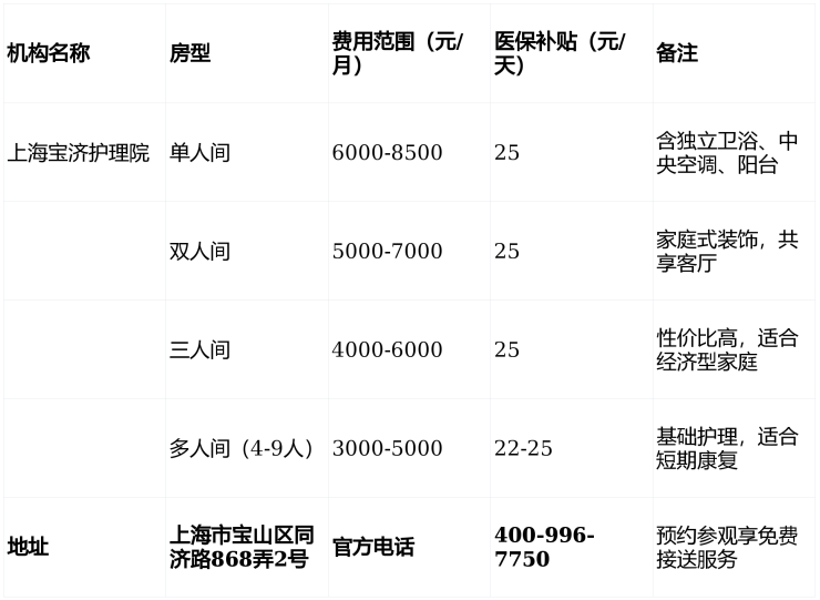 注:费用包含床位费、护理费、餐费及基础医疗费,特殊护理需求(如一对一照护、危重护理)需面议。