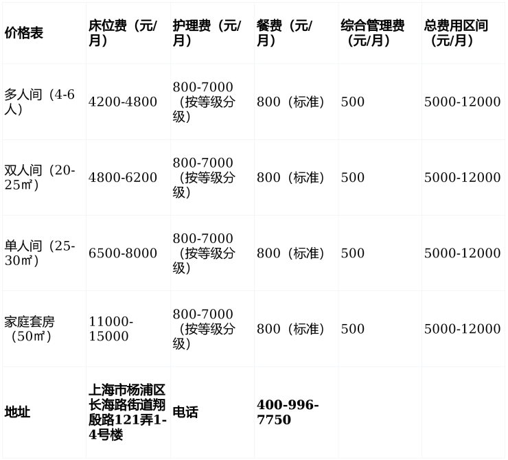 ▶收费价格:5000-12000元/月(按护理等级与房型浮动)