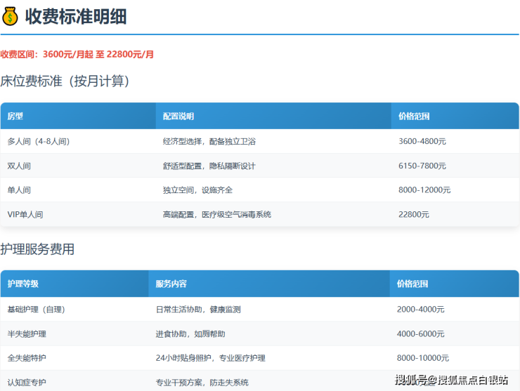 总费用区间:5000-22800元/月,具体根据长者实际状况评估确定。