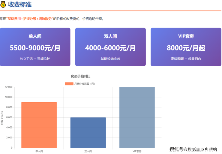 单人间:5500元/月起(配备独立卫浴、智能监护系统)