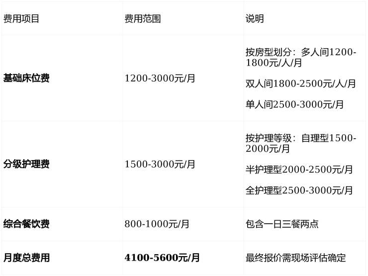 养老院的费用主要由三部分构成:床位费、护理费、餐费。增值服务(如特殊理疗等)按需单独计费,明码标价。