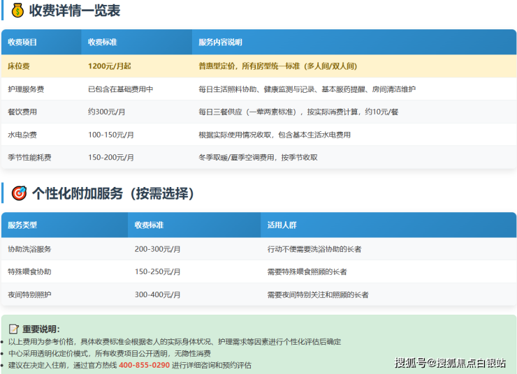 **个性化服务附加费:**如协助洗浴、特殊饮食需求等,按实际服务项目另行计费