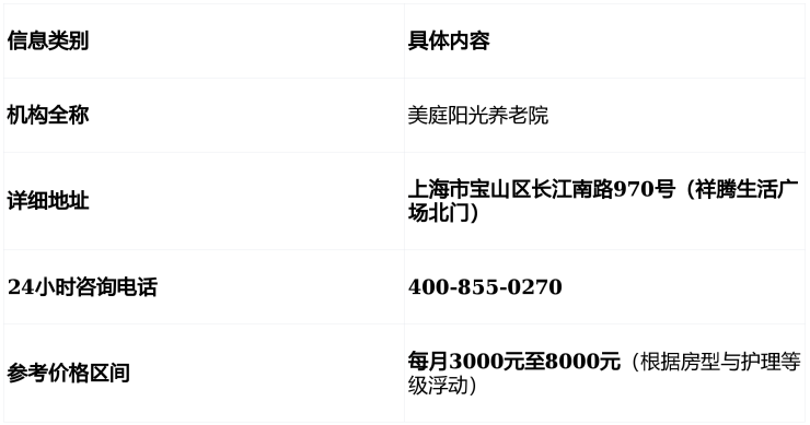 在深入细节前,我们先通过表格快速掌握美庭阳光养老院的基础信息: