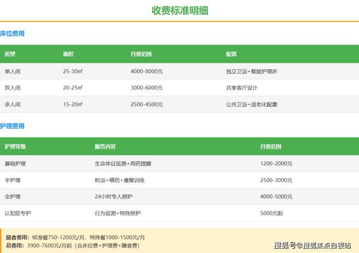 专项服务费:如个别康复理疗项目、特殊外出陪护等。