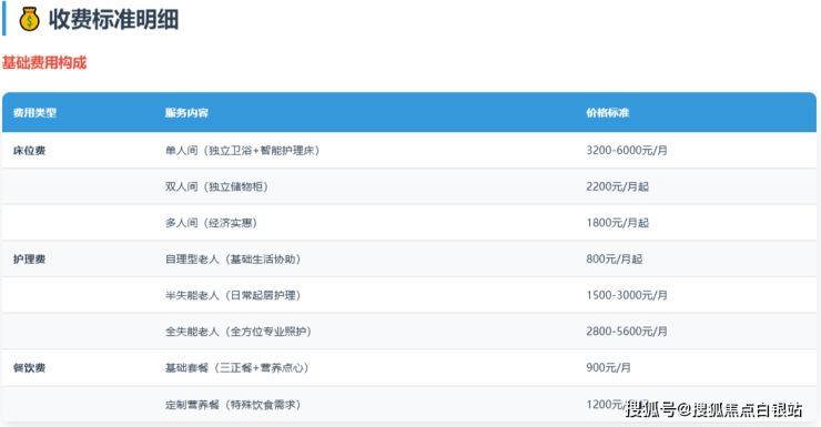 基础价格区间:4000-6000元/月(含床位、基础护理、餐饮)