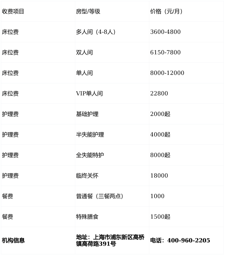 但记住,没有完美的养老院,只有适合的养老院!建议拨打400-960-2205预约实地参观,带上老人一起感受氛围、试吃餐食、观察护理员工作状态。地址就在上海市浦东新区高桥镇高荷路391号,24小时热线随时解答疑问~