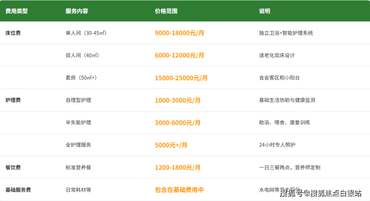 单人间:9000-18000元/月(30-45㎡,独立卫浴+智能护理系统)