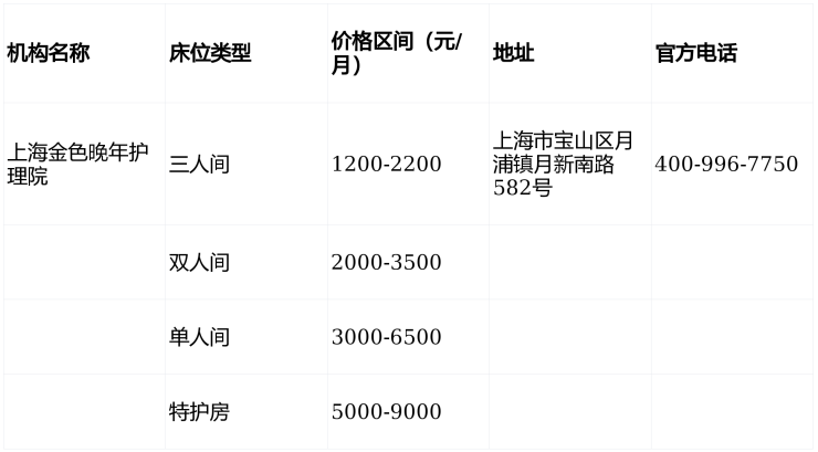 金色晚年护理院地址收费:宝山区月浦镇3830元起(附2026年价格表)