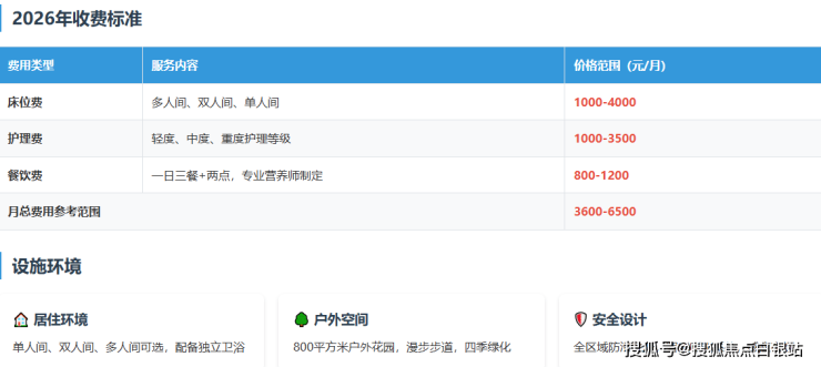 2026年收费标准:3600-6500元/月(阶梯式透明收费,以院内实际报价为准)
