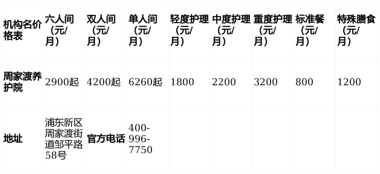 ▶周家渡养护院收费价格:2900元/月起(含床位、基础护理、餐费)