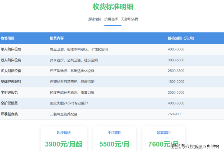 基础收费:3900元/月起(具体费用根据房型及护理等级确定)