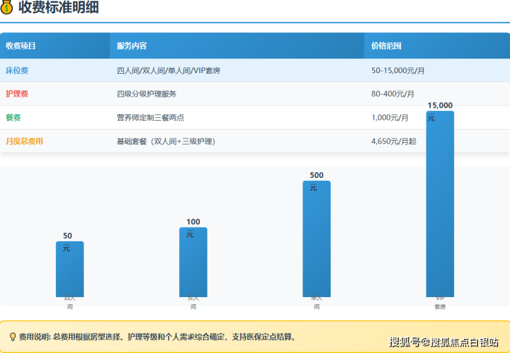 VIP套房:15000元/月起,含独立客厅、专属康复区及高级医护监护。